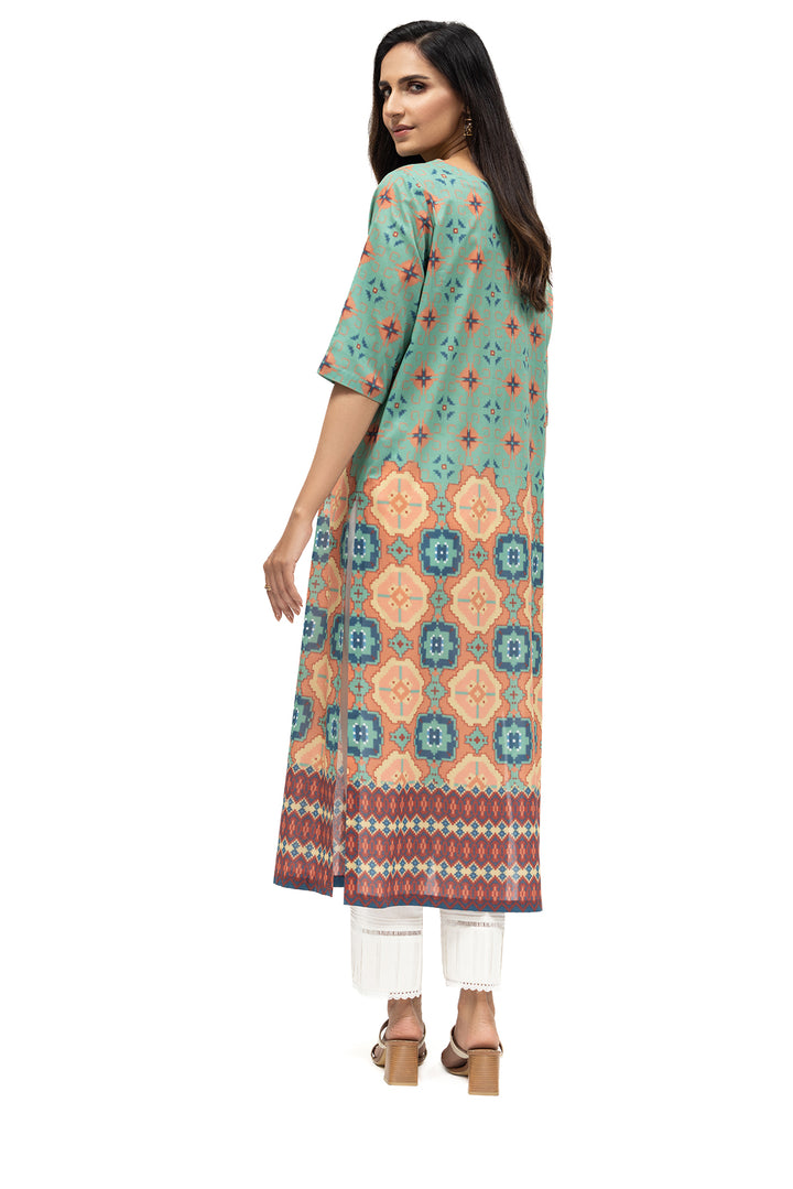 PE22-44-Round Neckline Straight Printed Shirt 1PC