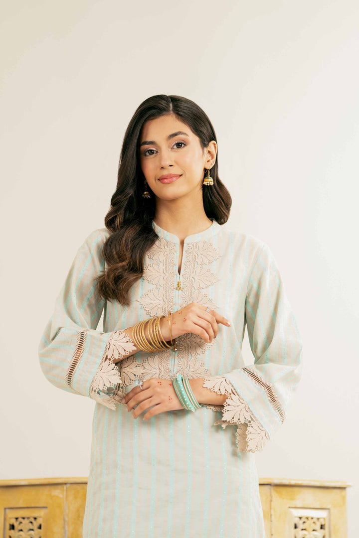 Elevate your wardrobe with this embroidered two-piece suit from the latest Pret Summer 'Boring Pastels' collection, designed to add elegance and subtle charm to your seasonal style.
