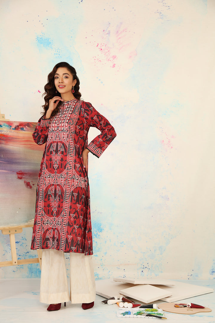 Make a day pleasingly memorable with this classic loose shirt with lace & embellishments detail on placket with printed flare pant from latest ready to wear Summer Collection 2021 Dawat-e-Eid by Nishat Linen.