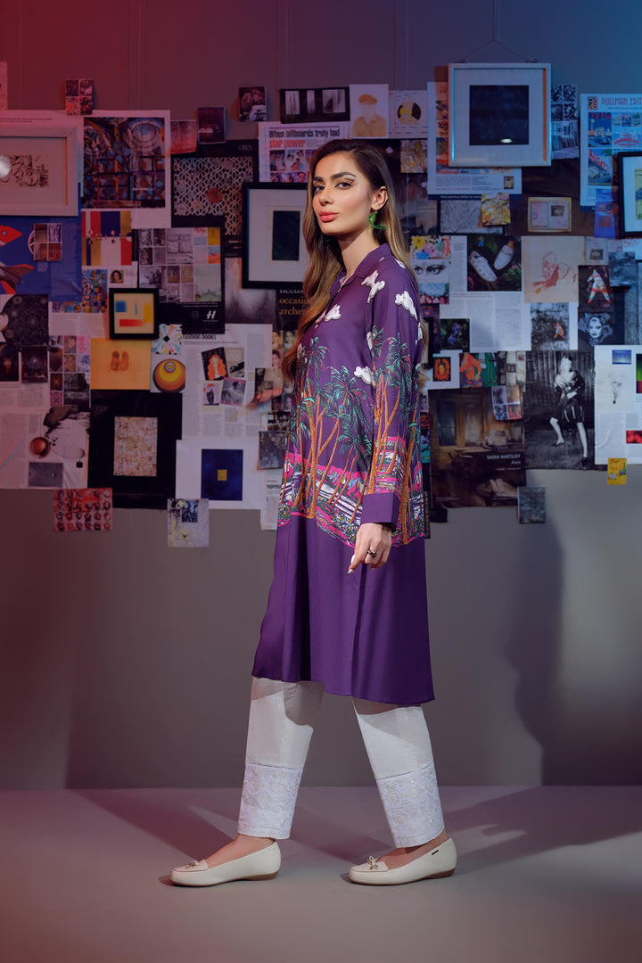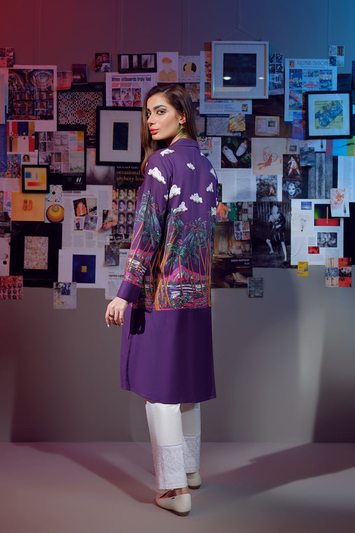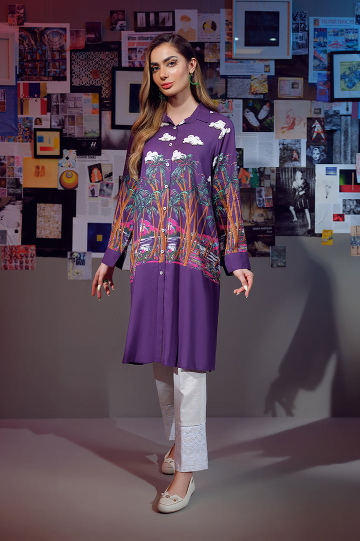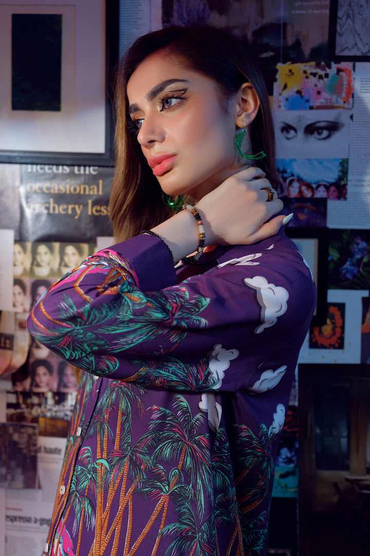 Get chic monochromatic looks by wearing this printed shirt from the latest Pret winter 2022 collection by Nishat Linen.